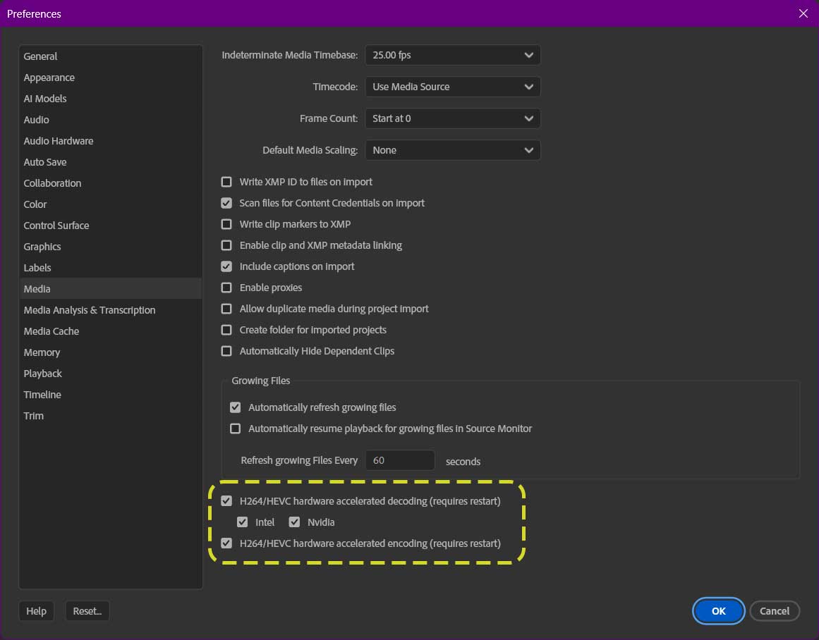 • بعد از تغییر این گزینه‌ها حتماً پریمیر را ری‌استارت کنید